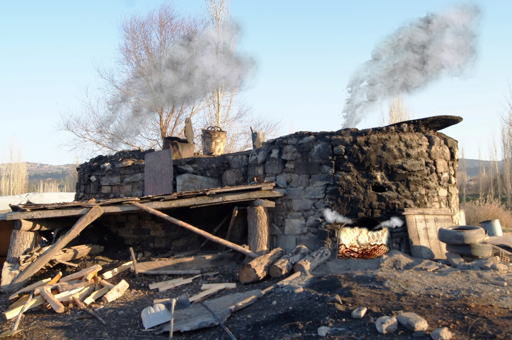 Bu metal kazanı da görmezsin sen, taştan ve çamurdan örülmüş bir fırının içinde durur dik olarak. Odunları dizme işi bittiğinde kapağı kapanır kazanın, çamurla sıvanır. Fırınla bir olur. Fırında ateş yakacağız tabii, az hava olacak ama çıralı odunların olduğu kazanda hiç hava olmamalı.