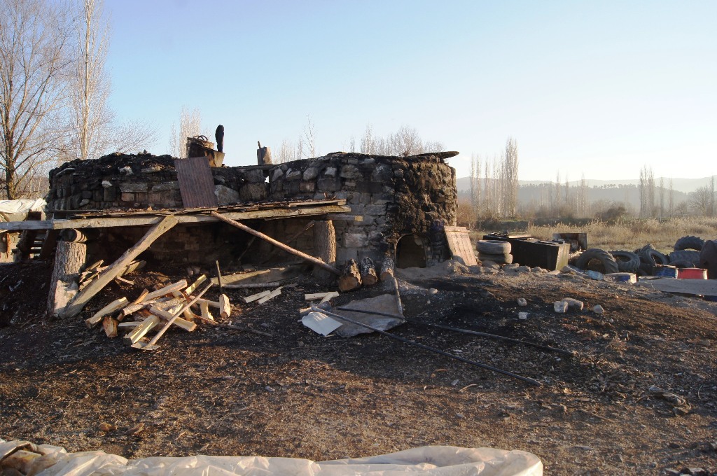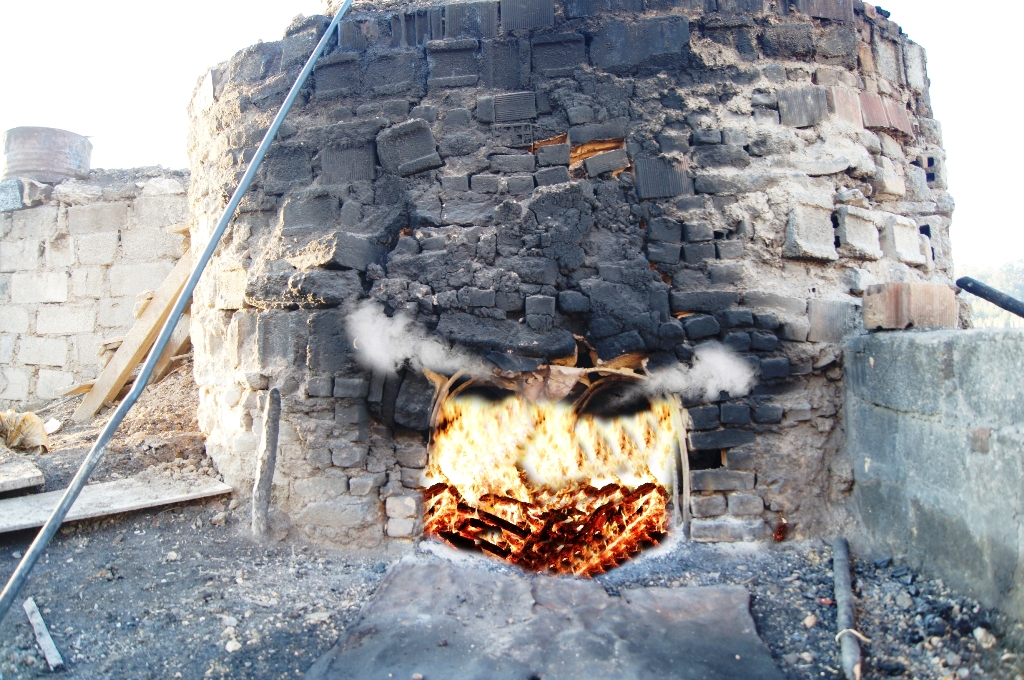 Taştan örülme fırının yanında şömine kapağına benzer bir kapak olur. İşte ordan odun konmaya başlanır fırının içine, metal kazanın etrafına. Ve odunlar ateşlenir. Fırının içindeki ısı yükseldikçe kazanın içindeki çıralı odunlar salmaya başlar özünü. Öz dediysek katran işte. Kazanın altındaki bağlantılı boruya doğru yavaş yavaş akar katran ve 4-5 metre gider böyle toprağın altında borunun içinde. En sonunda boru biter ve katran yavaş yavaş, zahmetle tenekeleri doldurmaya başlar.